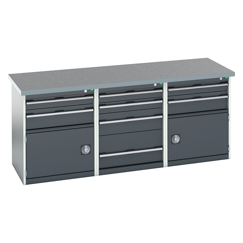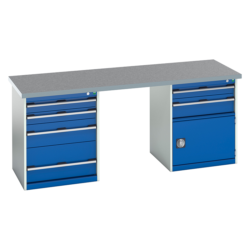 Each bench features integrated pedestal storage units that provide secure, organised space for tools, components and equipment, helping to streamline workflow and reduce downtime. The robust steel frame ensures long-term durability, while the choice of worktop finishes allows you to tailor the bench to your specific operational needs.